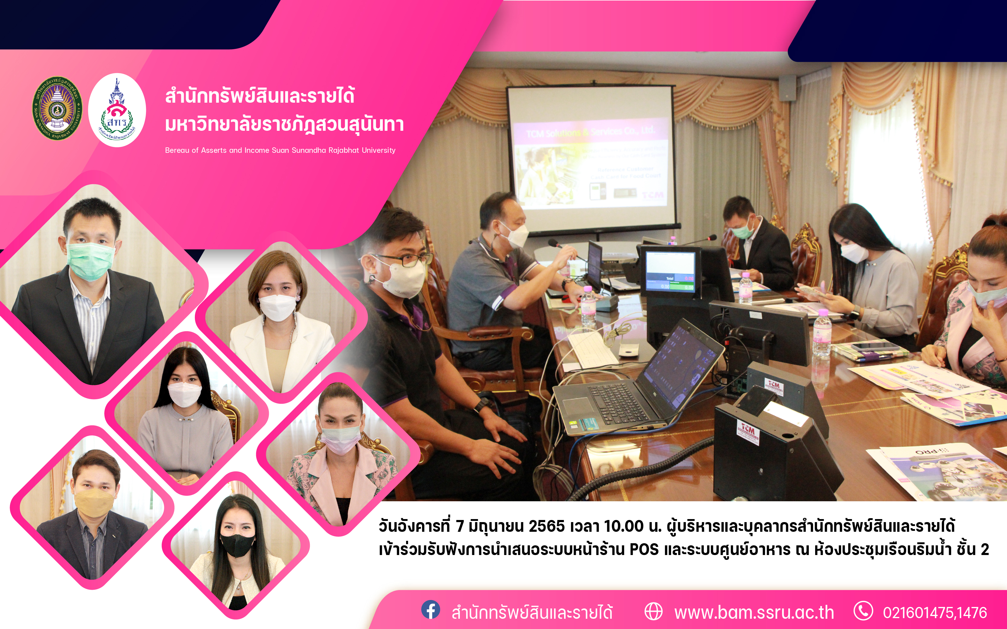 7 June 2022, 10:00 hrs. – Administrators and staff from Bureau of Assets and Income joined the meeting for listening to POS and food court system presentation at Ruen Rim Nam Meeting Room.