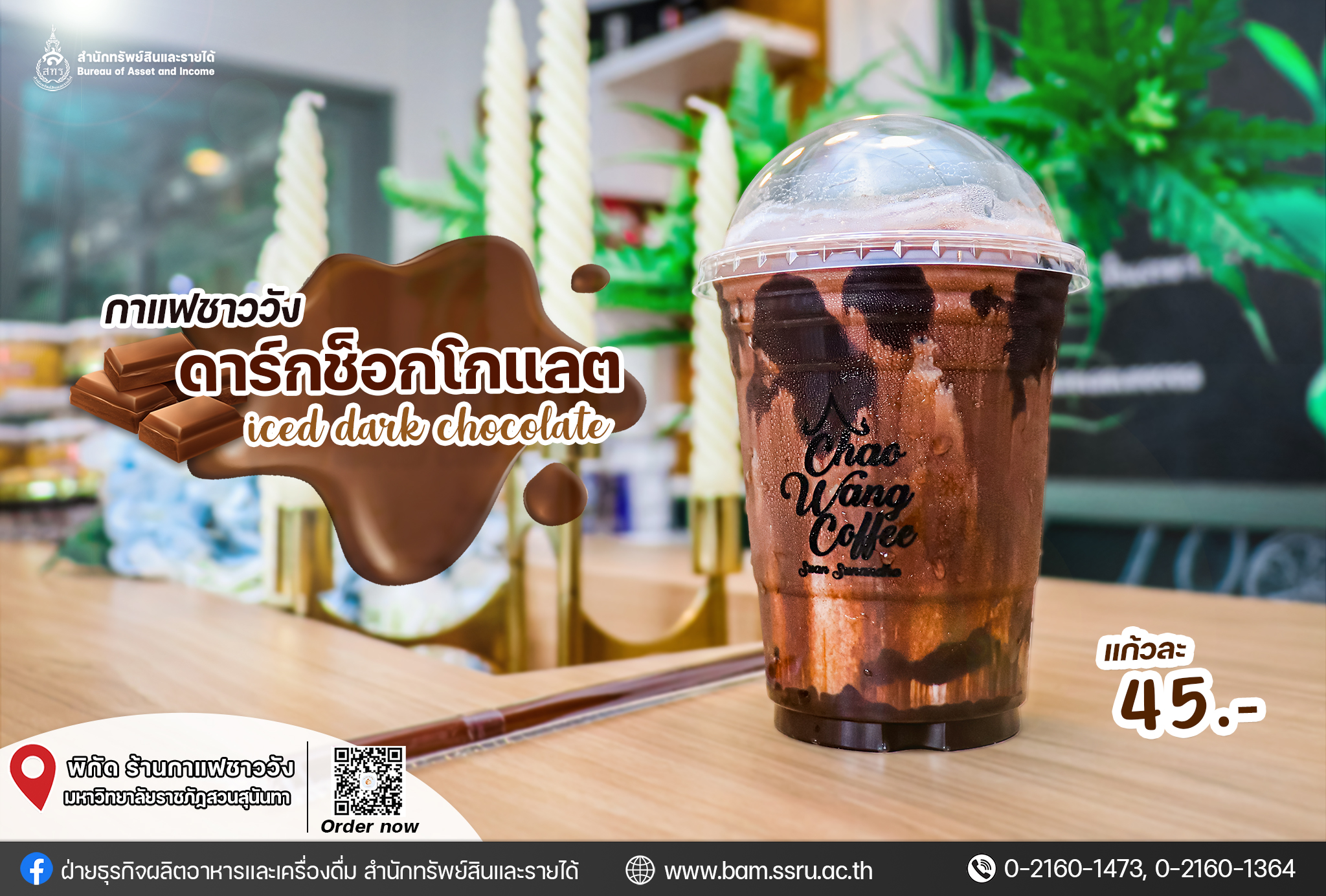 Chao Wang Coffee Shop recommends Ice Dark Chocolate. Being delicious with rich chocolate. Come and try.