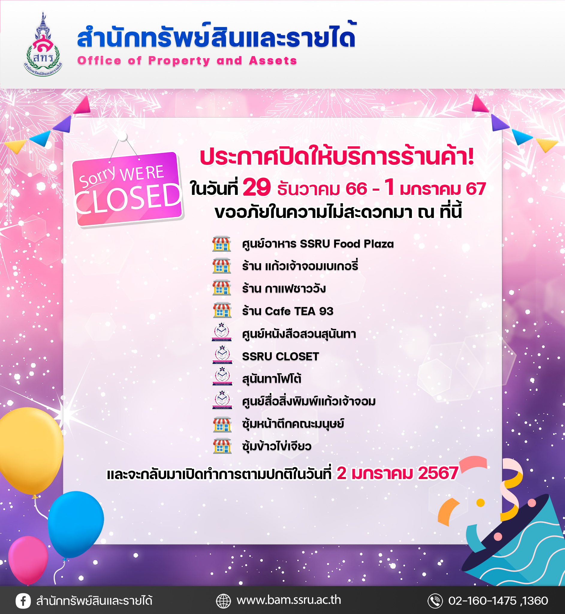 will be opened as usual from 2 January