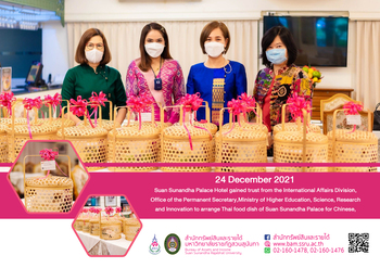 24 December 2021 – Suan Sunandha Palace Hotel gained trust from the International Affairs Division, Office of the Permanent Secretary, Ministry of Higher Education, Science, Research and Innovation to arrange Thai food dish of Suan Sunandha Palace for Chinese, Japanese and Indian Ambassador in Thailand.