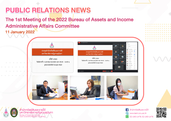 11 January 2022 – Executives and staff of the Bureau of Assets and Income joined the 1st Meeting of the 2022 Bureau of Assets and Income Administrative Affairs Committee via Google Meet, which was headed by Dr. Kaenpetch Saranonthawat, Director of Bureau of Assets and Income