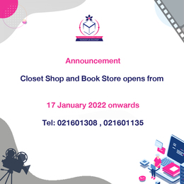 Closet Shop and Book Store opens from 17 January 2022 onwards