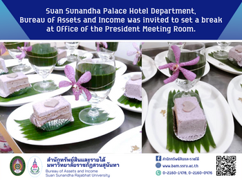 26 October 2021, Suan Sunandha Palace Hotel Department, Bureau of Assets and Income was invited to set a break at Office of the President Meeting Room.
