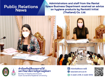 28 October 2021 - The Rental Space Business Department, Bureau of Assets and Income, led by Miss Walaikorn Komolsing, Manager along with Miss Netsai Suphannu and staff received an advice on hygiene products by Rentokil Initial (Thailand) Co. Ltd. The venue was held at Ruen Rim Nam Meeting Room, Suan Sunandha Rajabhat University.