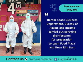 Rental Space Business Department, Bureau of Assets and Income carried out spraying disinfectants for preparation to open Food Plaza and Ruen Rim Nam, which will be opened on 1 November 2021, under strictly preventing the spread of the COVID-19.