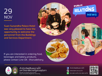 29 November 2021 – Suan Sunandha Palace Hotel was very pleased to have the opportunity to welcome the personnel from the Buildings and Services Department and gained trust to arrange the Suan Sunandha recipe at Kaew Chao Chom Restaurant.