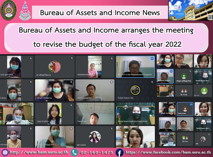 16 July 2021 - Bureau of Assets and Income arranges the meeting to revise the budget of the fiscal year 2022 via Google Meet, which was headed by Ms. Narumon Chomchom, Deputy Director of Business Development and Cost Control. The participants were Head of the Office, Managers, Heads of departments and staff.