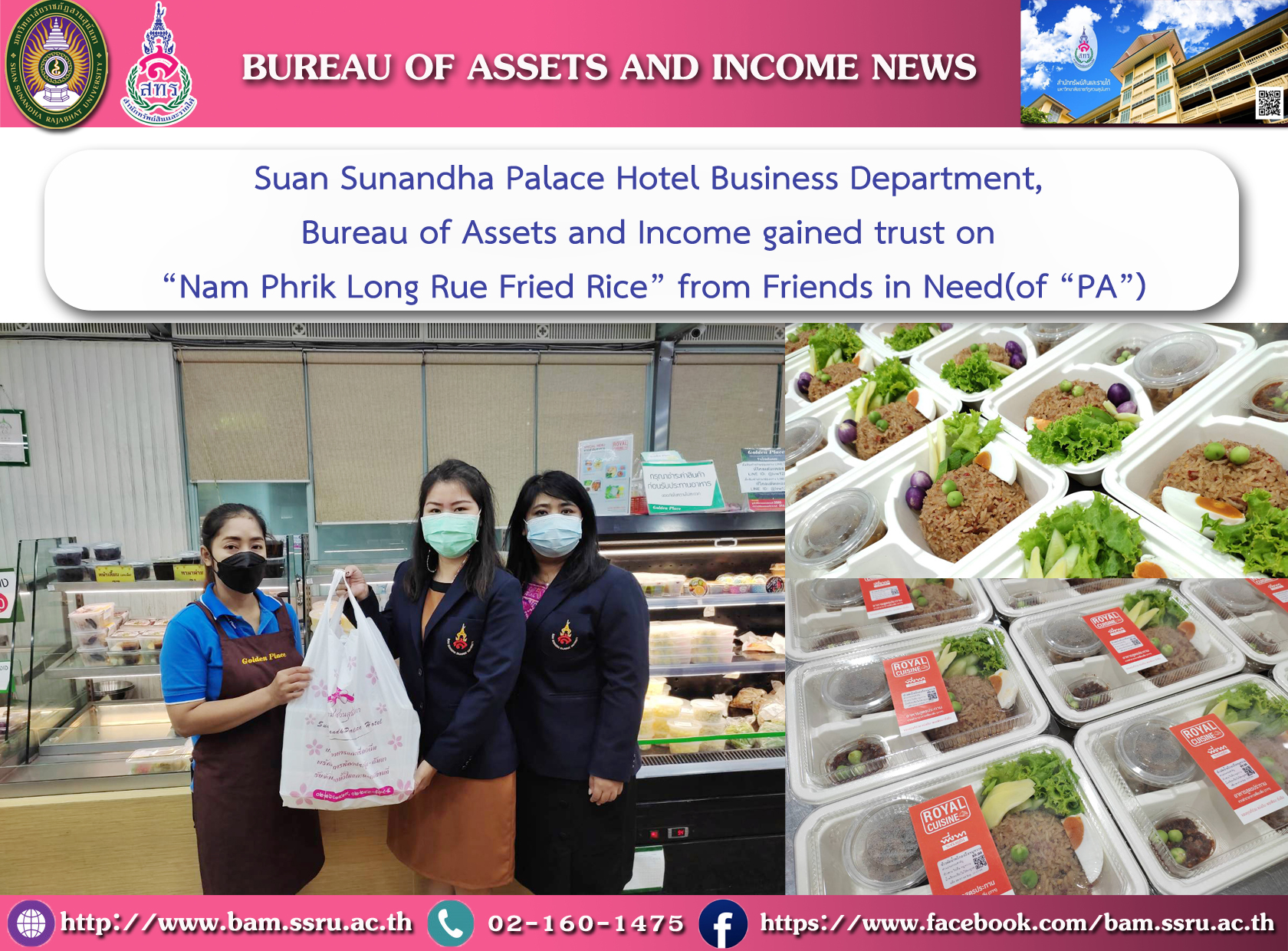 Suan Sunandha Palace Hotel Business Department, Bureau of Assets and Income gained trust on “Nam Phrik Long Rue Fried Rice” from Friends in Need(of “PA”)