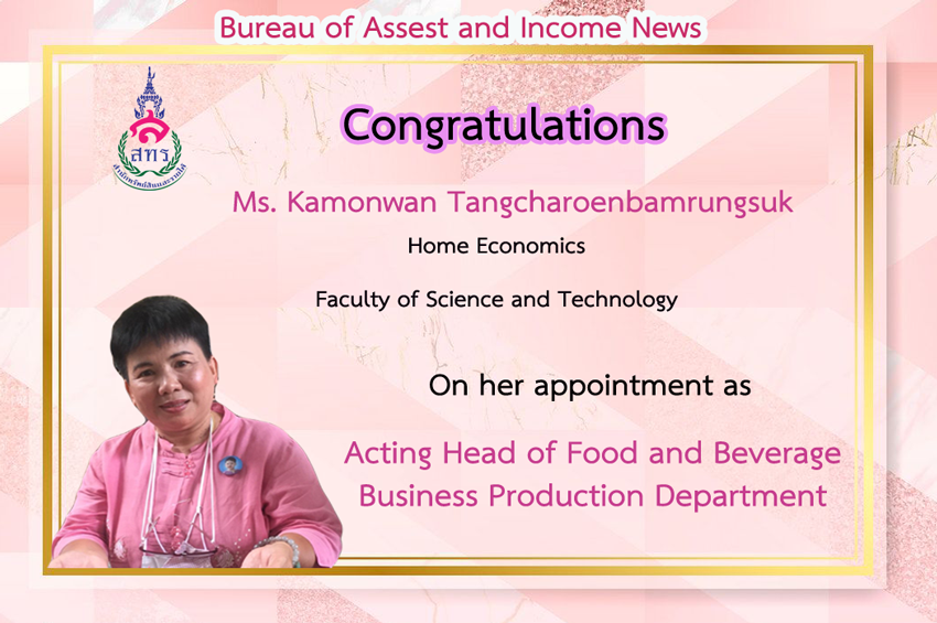 Bureau of Assets and Income congratulated to Ms. Kamonwan Tangcharoenbamrungsuk on her appointment as "Acting Head of Beverage and Food Business Department"