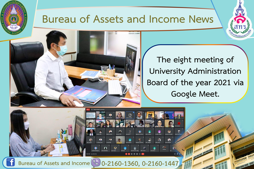 9 August 2021 – Dr. Kanpetch Saranontawat, Director of Bureau of Assets and Income along with Ms. Jeeranan Wueamprakhon, Head of Bureau of Assets and Income attended the eight meeting of University Administration Board of the year 2021 via Google Meet. The venue was headed by Assoc. Prof. Dr. Chutikarn Sriviboon, the President of Suan Sunandha Rajabhat University.