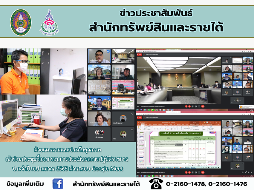 14 September 2021 – Director of Bureau of Assets and Income assigned Mr. Yodchai Kraipetch, Head of Planning and Quality Assurance Department and Miss Niransa Thanasuphan, Policy and Planning Analyst to participate the online meeting to clarify the framework for evaluation of government performance of fiscal year 2022 via Google Meet.