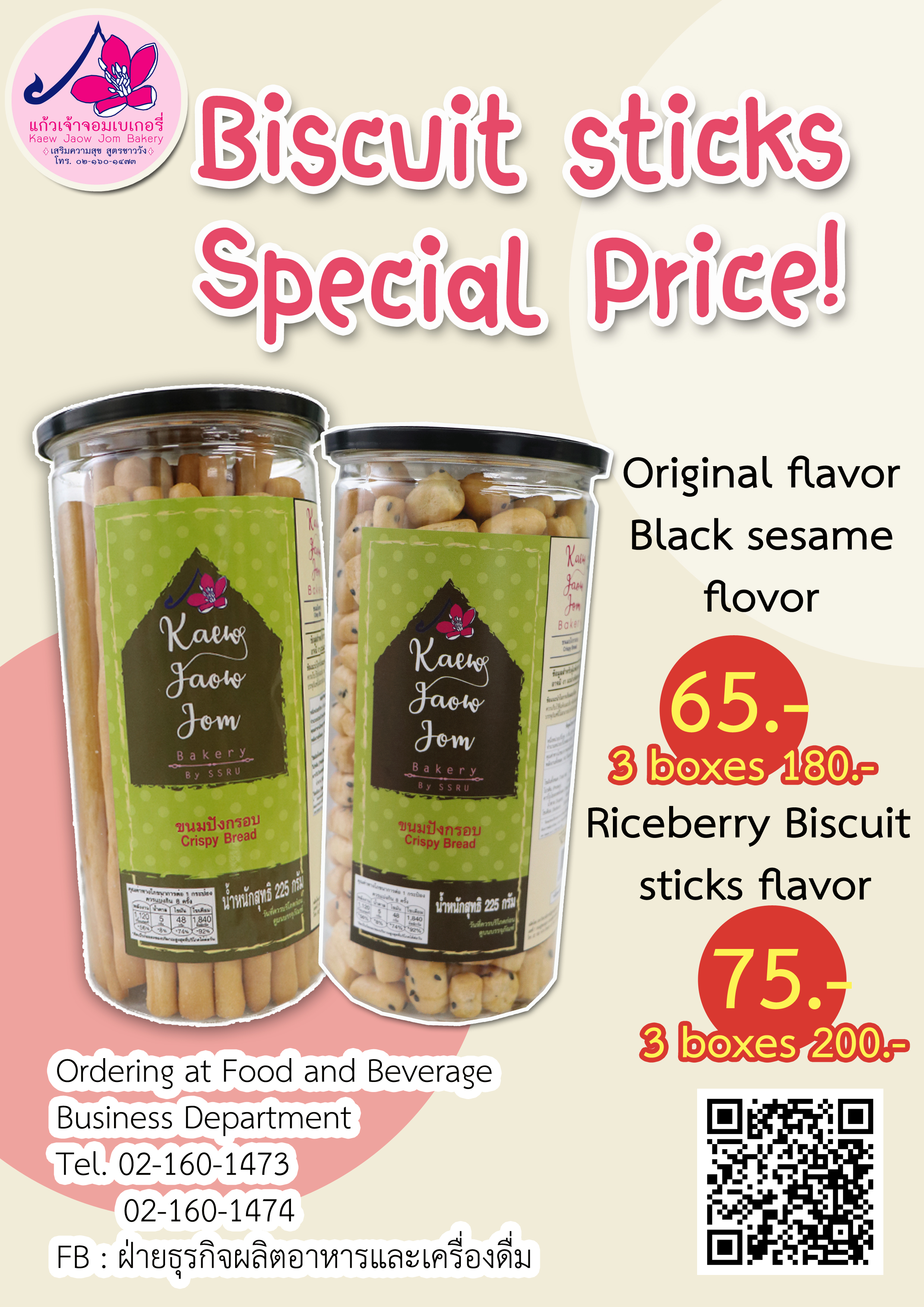 Ordering at Food and Beverage Business Department, Bureau of Assets and Income, Suan Sunandha Rajabhat University at 02-160-1473, 02-160-1474