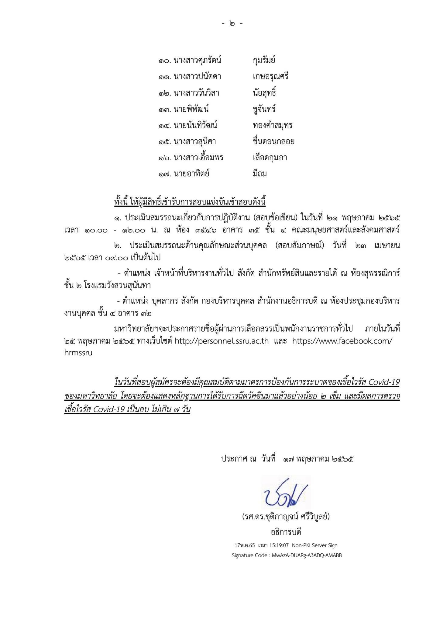 ประกาศรายชื่อผู้มีสิทธิ์สอบแข่งขันพนักงานราชการทั่วไป ตำแหน่งเจ้าหน้าที่บริหารงานทั่วไป สังกัดสำนักทรัพย์สินและรายได้ และ ตำแหน่งบุคลากร สังกัดกองบริหารงานบุคคล สำนักงานอธิการบดี มหาวิทยาลัยราชภัฏสวนสุนันทา
