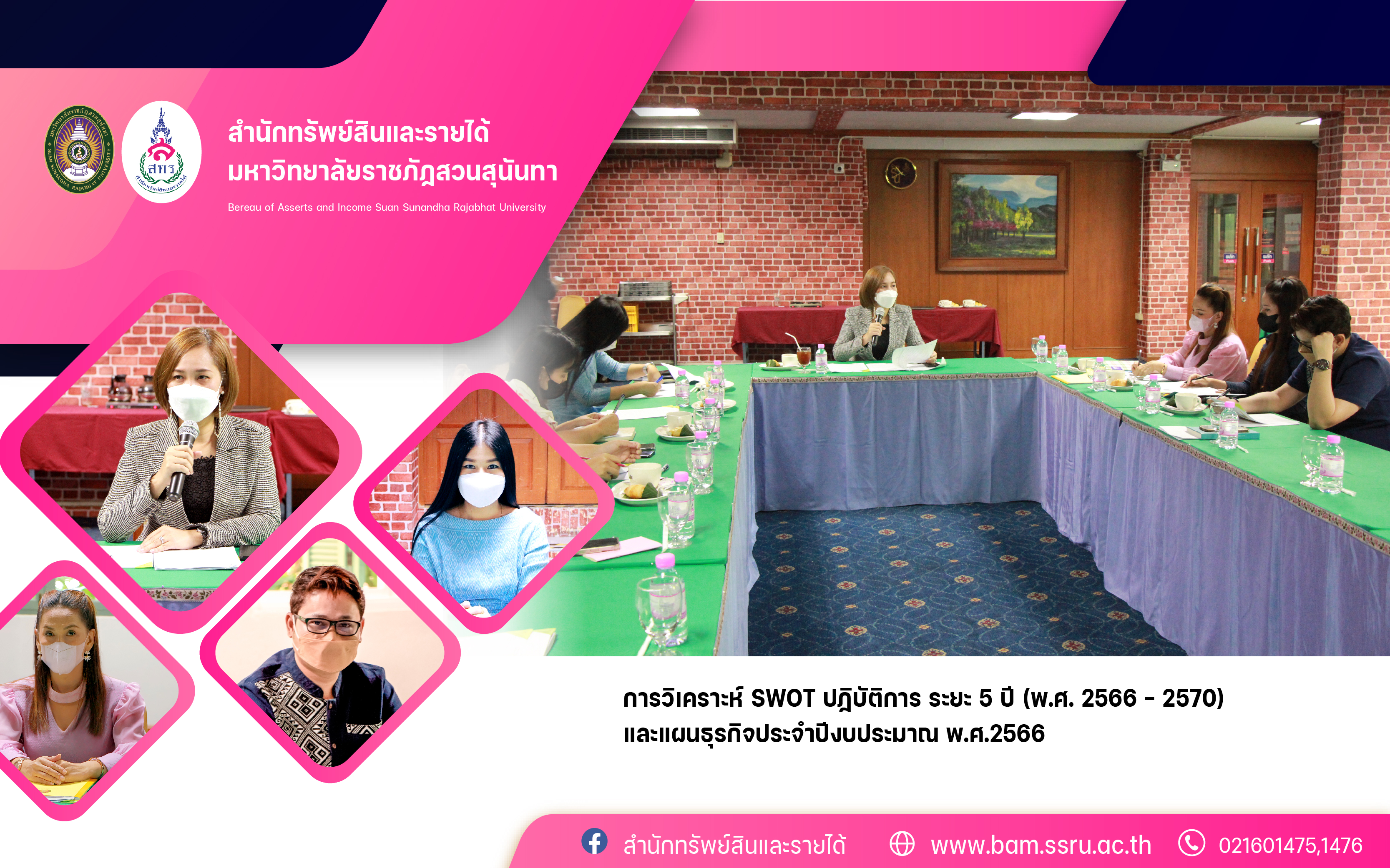 วันที่ 27 พฤษภาคม 2565 เวลา 09.30 - 12.00 น. สำนักทรัพย์สินและรายได้จัดประชุมวิเคราะห์ SWOT แผนปฏิบัติการ ระยะ 5 ปี (พ.ศ. 2566 - 2570) และแผนธุรกิจ ประจำปีงบประมาณ พ.ศ. 2566 โดยมี อาจารย์ นฤมล ชมโฉม รองผู้อำนวยการฝ่ายพัฒนาธุรกิจและควบคุมต้นทุน เป็นประธานการประชุม ณ ห้องสุพรรณิการ์ ชั้น 2 โรงแรมวังสวนสุนันทา