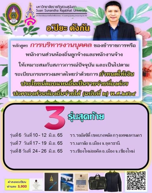 หลักสูตร การบริหารงานบุคคลของข้าราชการหรือพนักงานส่วนท้องถิ่น ลูกจ้างและพนักงานจ้าง ให้เหมาะสมกับสภาวการณ์ปัจจุบัน และเป็นไปตามระเบียบกระทรวงมหาดไทยว่าด้วยการกำหนดให้เงินประโยชน์ตอบแทนอื่นเป็นรายจ่ายที่องค์กรปกครองส่วนท้องถิ่นจ่ายได้ (ฉบับที่ ๒) พ.ศ.๒๕๖๔