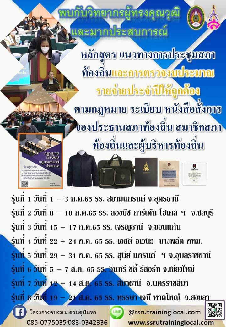 หลักสูตร แนวทางการประชุมสภาท้องถิ่นและการตรวจงบประมาณรายจ่ายประจำปีให้ถูกต้องตามกฎหมาย ระเบียบ หนังสือสั่งการ ของประธานสภาท้องถิ่น สมาชิกสภาท้องถิ่นและผู้บริหารท้องถิ่น
