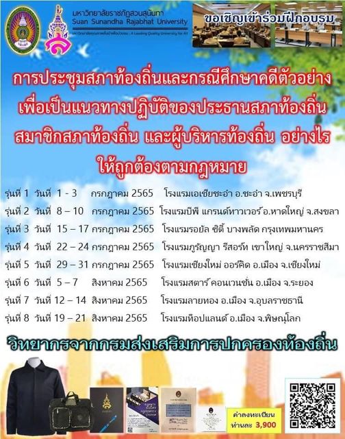 หลักสูตรการประชุมสภาท้องถิ่นและกรณีศึกษาคดีตัวอย่าง เพื่อเป็นแนวทางปฏิบัติของประธานสภาท้องถิ่น สมาชิกสภาท้องถิ่น และผู้บริหารท้องถิ่น อย่างไรให้ถูกต้องตามกฎหมาย