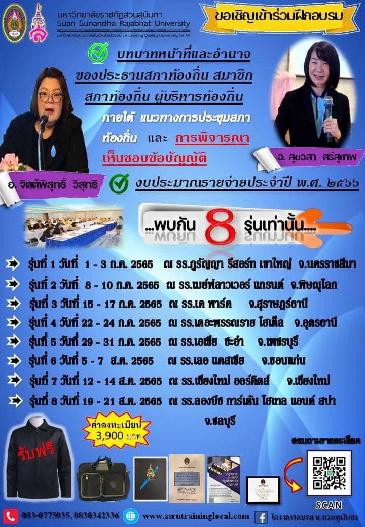 หลักสูตร บทบาทหน้าที่และอำนาจของประธานสภาท้องถิ่นสมาชิกสภาท้องถิ่น ผู้บริหารท้องถิ่น ภายใต้แนวทางการประชุมสภาท้องถิ่น และการพิจารณาเห็นชอบข้อบัญญัติงบประมาณรายจ่ายประจำปี พ.ศ. 2566