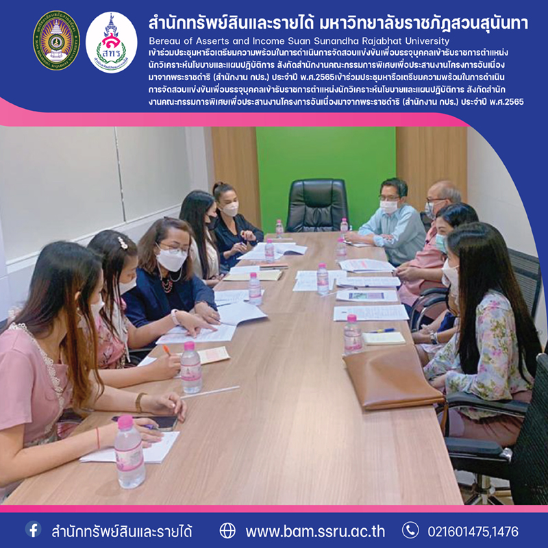 ฝ่ายธุรกิจพื้นที่ให้เช่า สำนักทรัพย์สินและรายได้ ได้เข้าร่วมประชุมหารือเตรียมความพร้อมในการดำเนินการจัดสอบแข่งขันเพื่อบรรจุบุคคลเข้ารับราชการตำแหน่งนักวิเคราะห์นโยบายและแผนปฏิบัติการ สังกัดสำนักงานคณะกรรมการพิเศษเพื่อประสานงานโครงการอันเนื่องมาจากพระราชดำริ (สำนักงาน กปร.) ประจำปี พ.ศ.2565 โดยมีนางสาววลัยกร โกมลสิงห์ ผู้จัดการฝ่ายธุรกิจพื้นที่ให้เช่า และ นางสาวเนตรทราย สุพรรณ์หนู รักษาการหัวหน้าฝ่ายธุรกิจพื้นที่ให้เช่า ณ อาคาร 17 ชั้น 2 หอประชุมสุนันทานุสรณ์