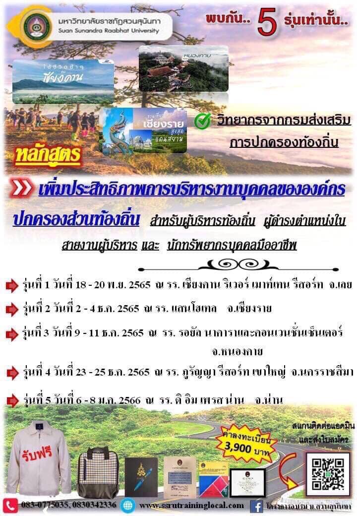 หลักสูตร เพิ่มประสิทธิภาพการบริหารงานบุคคลขององค์กรปกครองส่วนท้องถิ่นสำหรับผู้บริหารท้องถิ่น ผู้ดำรงตำแหน่งในสายงานผู้บริหาร และนักทรัพยากรบุคคลมืออาชีพ
