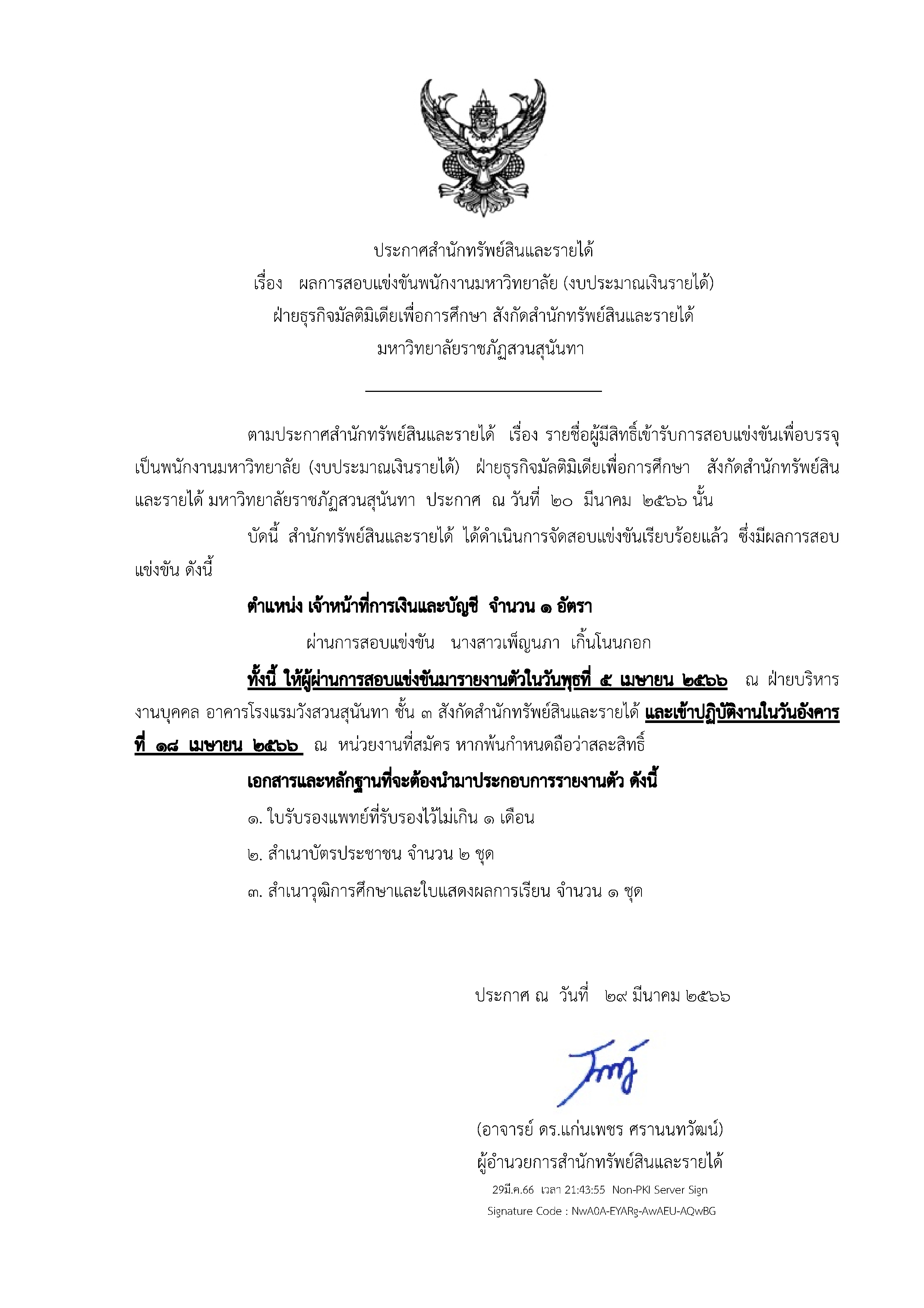 ประกาศ ผลการสอบแข่งขันพนักงานมหาวิทยาลัย