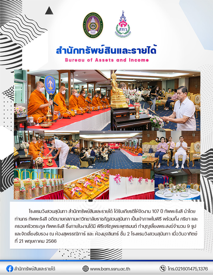 > โรงแรมวังสวนสุนันทา สำนักทรัพย์สินและรายได้ ได้รับเกียรติให้จัดงาน 107 ปี ครอบครัวทัพพะรังสี