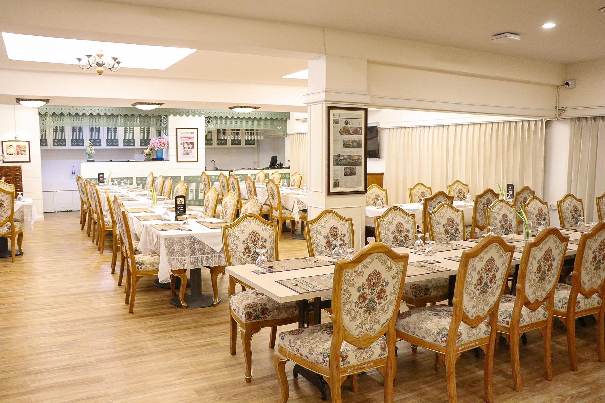 > ห้องอาหารแก้วเจ้าจอม ณ ห้องอาหารแก้วเจ้าจอม ภายในตกแต่งบรรยากาศสไตล์ไทย รายการอาหารมีให้เลือกหลากหลาย