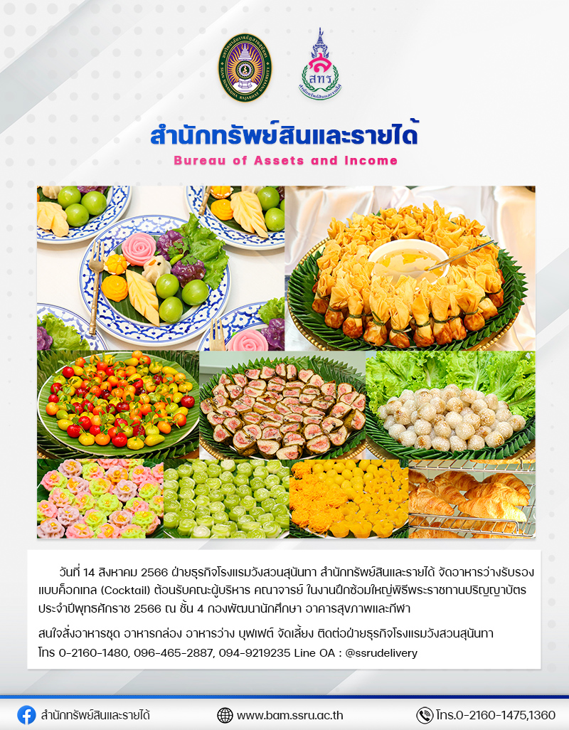 ฝ่ายธุรกิจโรงแรมวังสวนสุนันทาจัดอาหารว่างรับรองแบบค็อกเทล