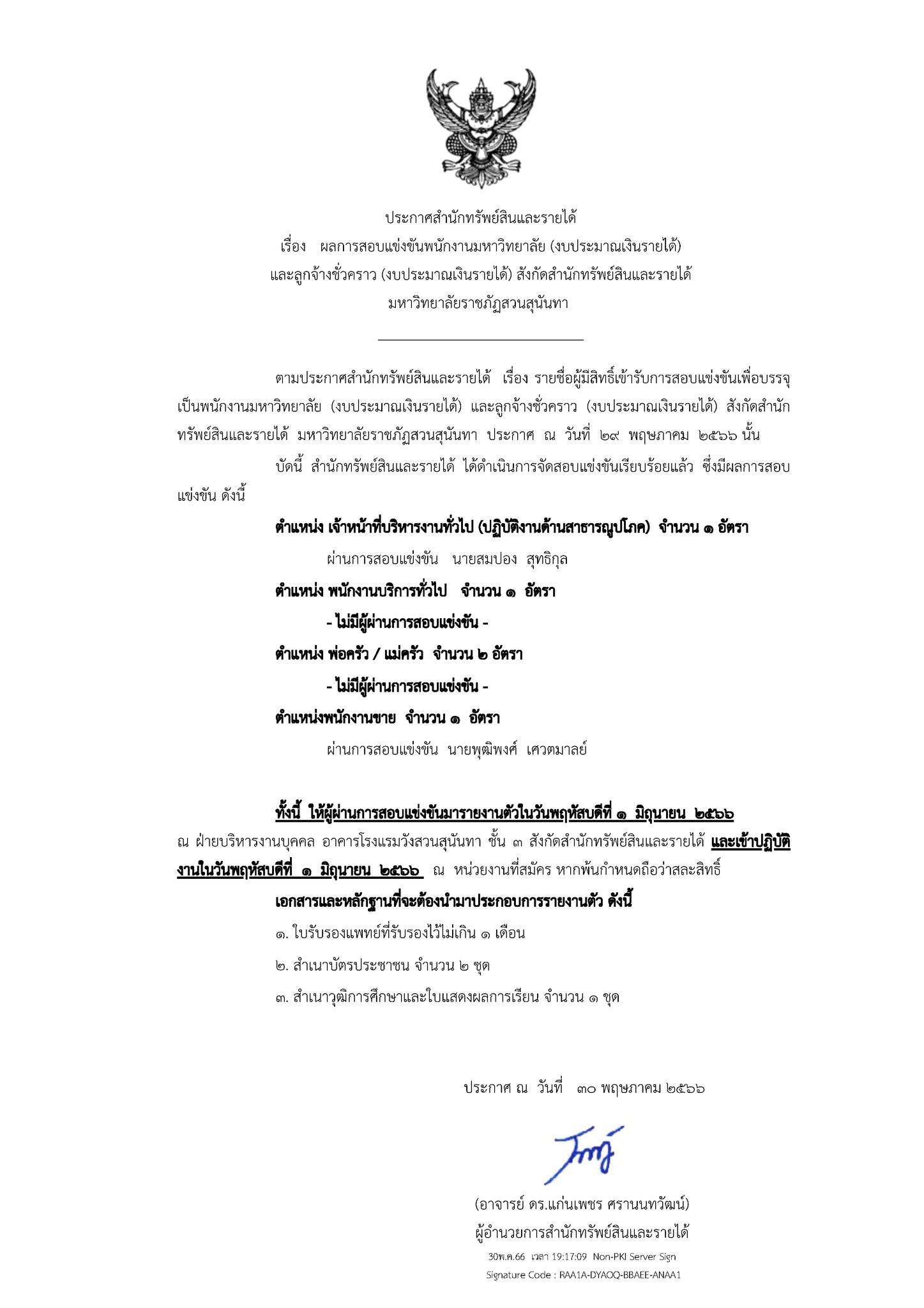 ประกาศ ผลการสอบแข่งขันพนักงานมหาวิทยาลัย (งบประมาณเงินรายได้) และลูกจ้างชั่วคราว (งบประมาณเงินรายได้) สังกัดสำนักทรัพย์สินและรายได้