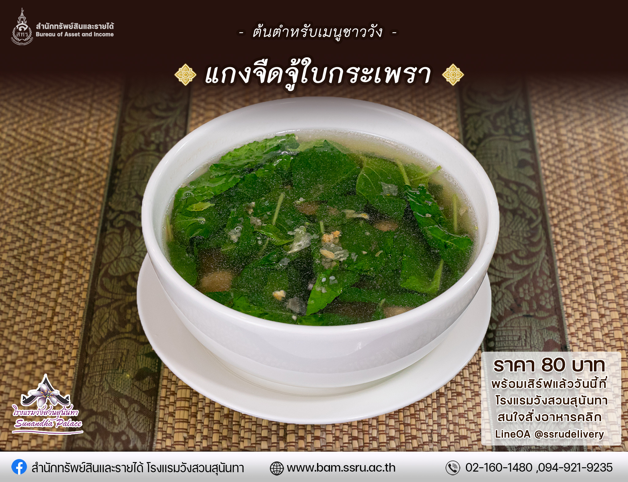 > แกงจืดจู้ใบกะเพรา สูตรเก่าโบราณ โรงแรมวังสวนสุนันทา