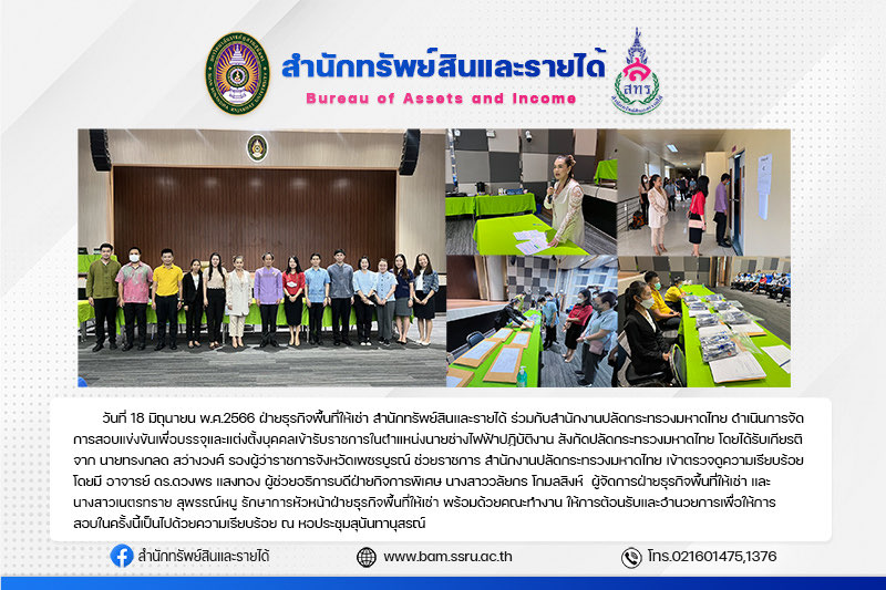 สำนักทรัพย์สินและรายได้ดำเนินการจัดการสอบแข่งขันเพื่อบรรจุและแต่งตั้งบุคคลเข้ารับราชการ