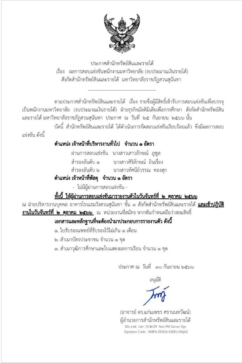 ประกาศรายชื่อผู้ผ่านการสอบแข่งขัน