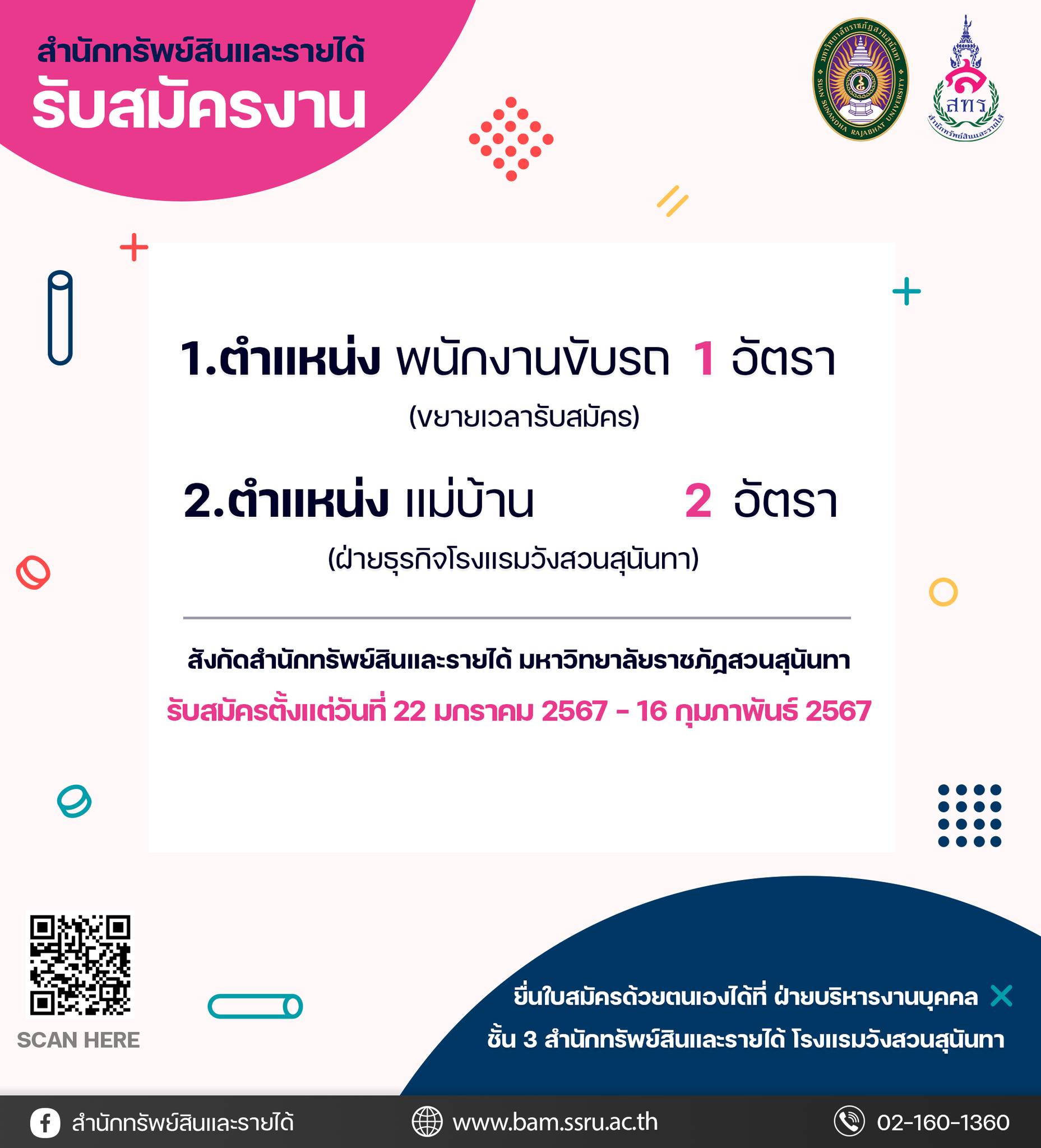 > ด่วน ประกาศรับสมัครงาน 1.ตําแหน่ง : พนักงานขับรถ 1 อัตรา 2.ตำแหน่ง : แม่บ้าน 2 อัตรา