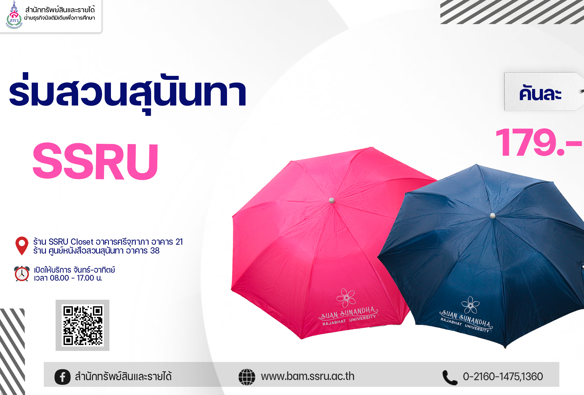 ร่มสวนสุนันทา Umbrella ร่มพับลายสุนันทา กัน UV โครงสร้างแข็งแรง ทนทาน วัสดุดี ตัวร่มเคลือบกัน UV กันความร้อนได้ดี ใช้ได้ทั้งกันแดดและกันฝน ราคา 179.- บาท