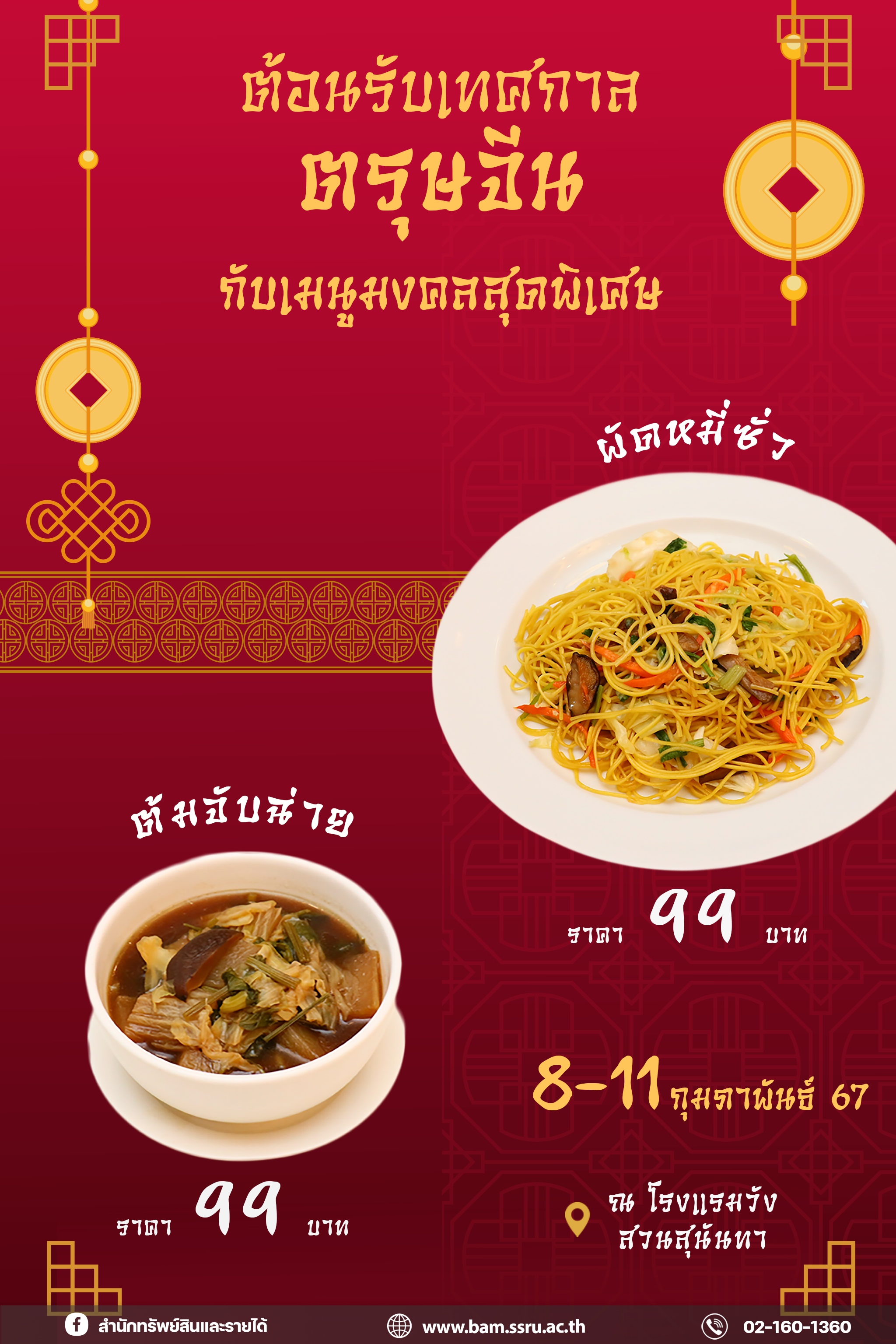 ต้อนรับเทศกาลตรุษจีนกับเมนูมงคลสุดพิเศษ อาทิ เช่น ผัดหมี่ซั่ว ต้มจับฉ่ายและปอเปี๊ยะ รับประทานแล้วรับรอง เฮง เฮง รวย รวย ตลอดปี