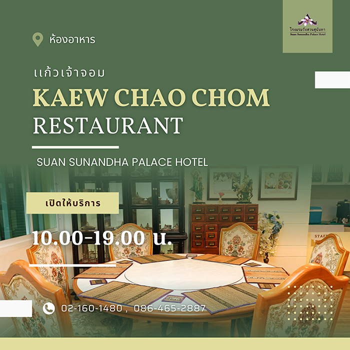 > เติมเต็มทุกมื้อพิเศษในบรรยากาศสุดคลาสสิก ที่ “ห้องอาหารแก้วเจ้าจอม” โรงแรมวังสวนสุนันทา