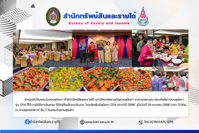> โรงแรมวังสวนสุนันทาได้จัดเลี้ยงให้กับงาน สานสัมพันธ์สุนันทา 1214 ประจำปี 2566