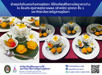 27 ตุลาคม 2564 ฝ่ายธุรกิจโรงแรมวังสวนสุนันทา ได้รับเกียรติในการจัดอาหารว่าง ณ ห้องประชุมสายสุทธานพดล (ตำหนัก) มุกแรก ชั้น 1 มหาวิทยาลัยราชภัฏสวนสุนันทา