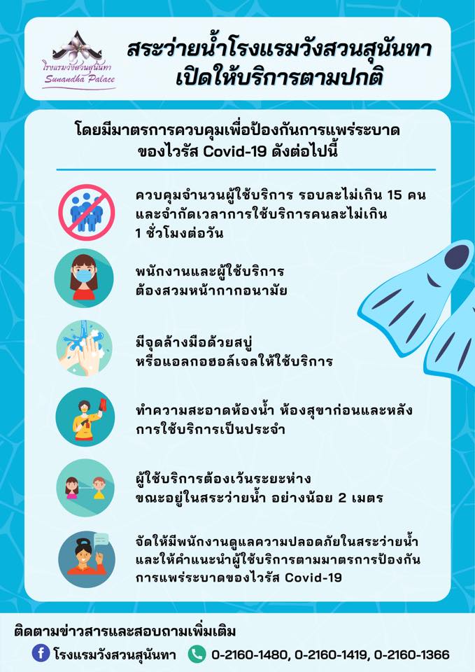 > มาตรการป้องกันการแพร่ระบาด Covid-19 ของสระว่ายน้ำโรงแรมวังสวนสุนันทา