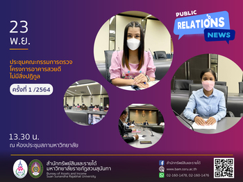 23 พฤศจิกายน 2564 เวลา 13.30 น. นางสาวจีรนันท์ เวือมประโคน หัวหน้าสำนักงานสำนักทรัพย์สินและรายได้ และนางสาวพัชรี บุญธรรม เจ้าหน้าที่บริหารงานทั่วไป เข้าร่วมประชุมคณะกรรมการตรวจโครงการอาคารสวยดีไม่มีสิ่งปฏิกูล ครั้งที่ 1 ณ ห้องประชุมสภามหาวิทยาลัย โดยมีผู้ช่วยศาสตราจารย์ ดร.ปรีชา พงษ์เพ็ง รองอธิการบดีฝ่ายบริหารเป็นประธานในการประชุม