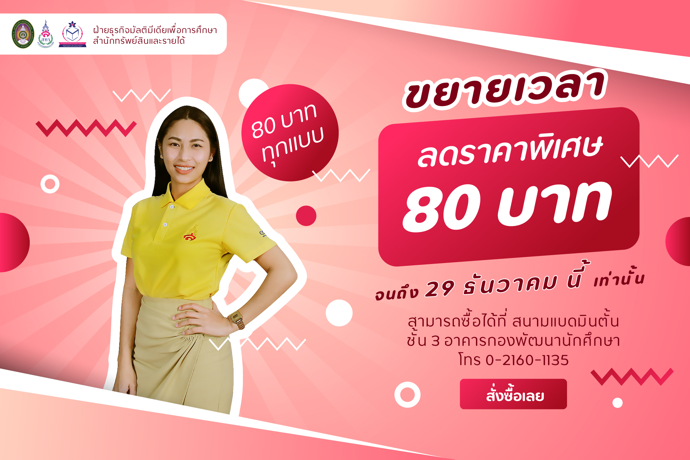 ประกาศจาก ฝ่ายธุรกิจมัลติมีเดียเพื่อการศึกษา สำนักทรัพย์สินและรายได้ มหาวิทยาลัยราชภัฏสวนสุนันทา ขยายเวลาจัดสินค้าลดราคา จนถึง 29 ธันวาคม 2564