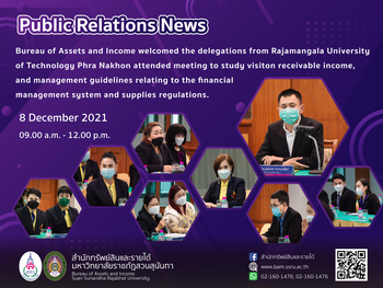 วันที่ 8 ธันวาคม 2564 เวลา 9.00 น. ผู้บริหารและบุคลากร สำนักทรัพย์สินและรายได้ นำโดย อ.ดร.แก่นเพชร ศรานนทวัฒน์ ผู้อำนวยการสำนักทรัพย์สินและรายได้ร่วมกับ ผู้บริหารและบุคลากร ของทางมหาวิทยาลัยเทคโนโลยีราชมงคลพระนคร นำโดย ผศ. เพ็ญนภา สุวรรณบํารุง ผู้ช่วยอธิการบดีฝ่ายการเงินและการคลัง มหาวิทยาลัยเทคโนโลยีราชมงคลพระนคร ได้ประชุมศึกษาดูงาน ด้านการจัดหารายได้ ของสํานักทรัพย์สินและรายได้ เพื่อเพิ่มความรู้ ประสบการณ์ และแลกเปลี่ยน แนวทางการบริหารงานที่เกี่ยวกับระบบการบริหารด้านการเงิน การคลังและระเบียบพัสดุที่เกี่ยวข้อง
