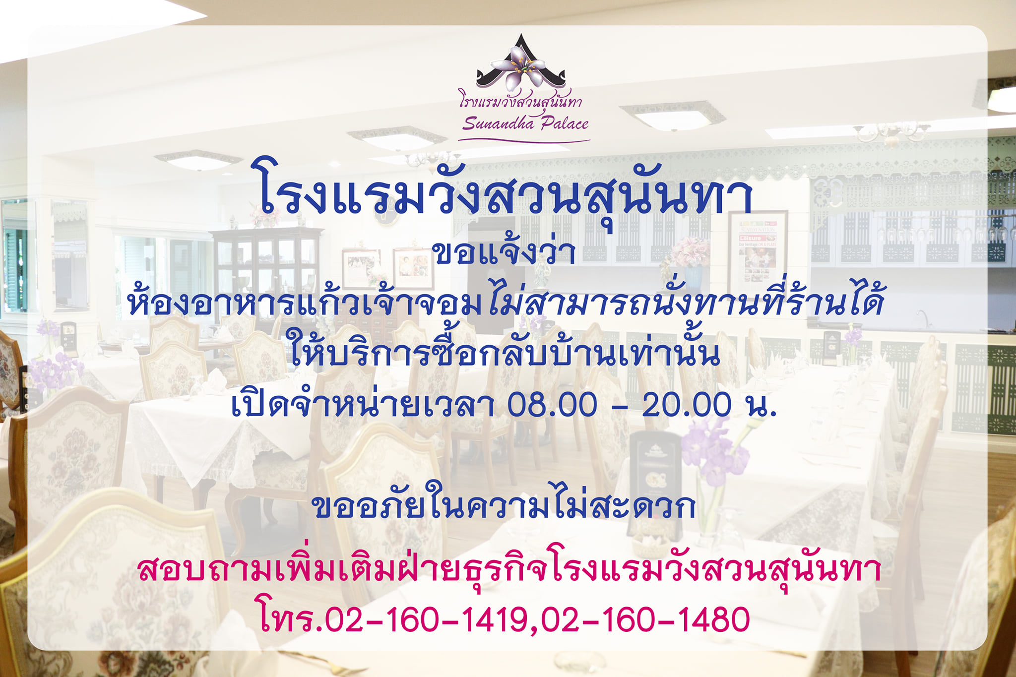 ห้องอาหารแก้วเจ้าจอมขอแจ้งว่า ห้องอาหารแก้วเจ้าจอมไม่สามารถนั่งทานที่ร้านได้ ให้บริการซื้อกลับบ้านเท่านั้น /28 มิถุนายน 2564