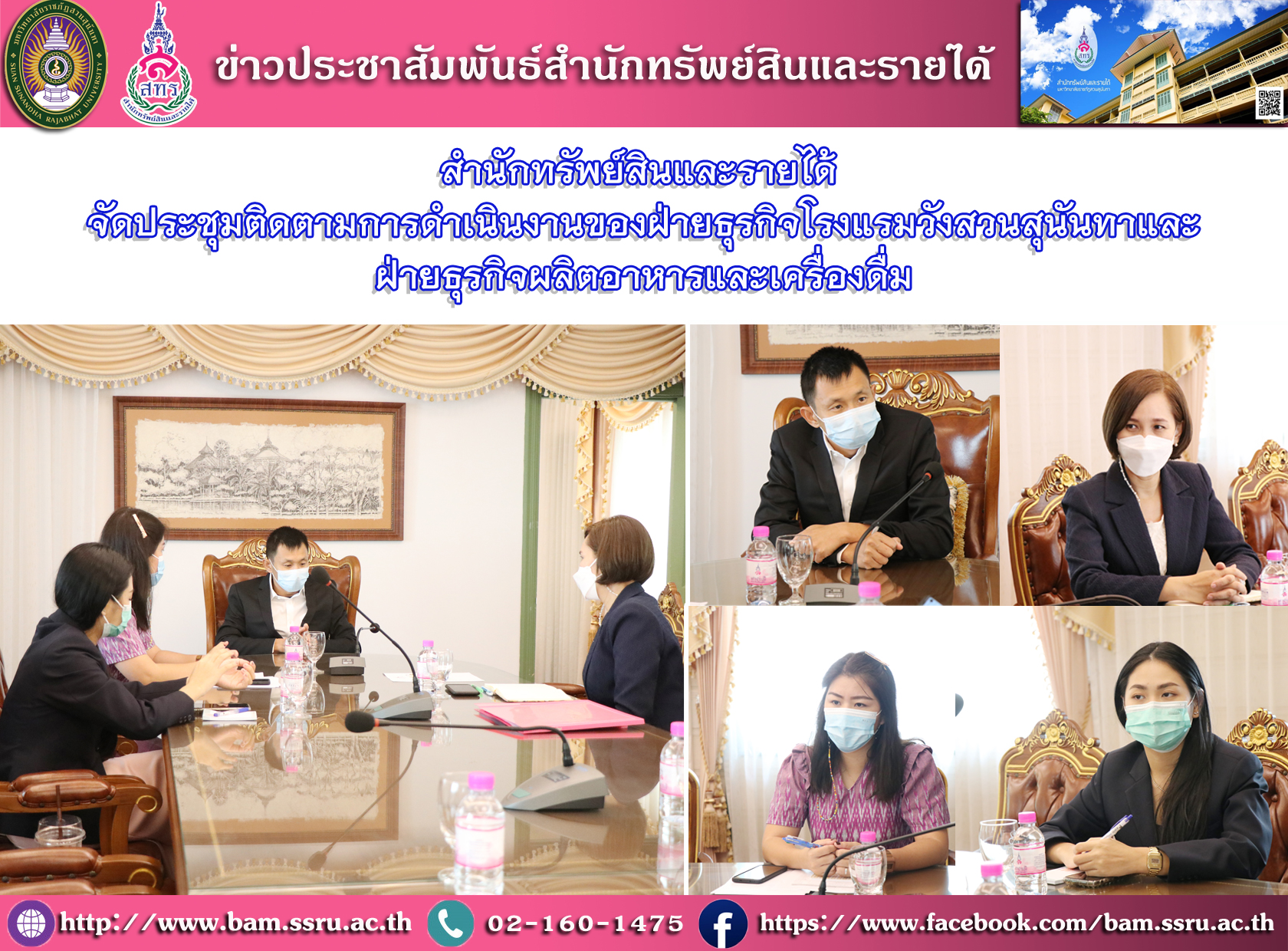 สำนักทรัพย์สินและรายได้ จัดประชุมติดตามการดำเนินงานของฝ่ายธุรกิจโรงแรมวังสวนสุนันทาและฝ่ายธุรกิจผลิตอาหารและเครื่องดื่ม