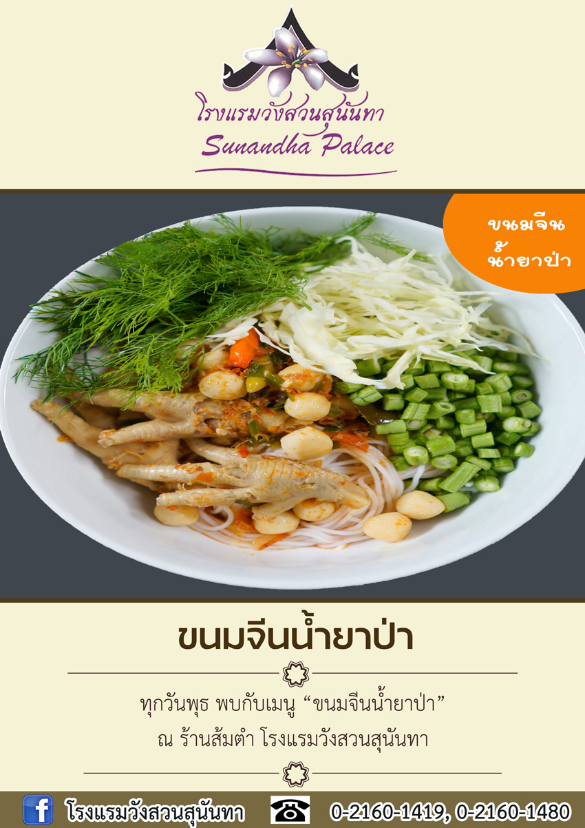 ทุกวันพุธ พบกับเมนู ขนมจีนน้ำยาป่า ณ ร้านส้มตำ โรงแรมวังสวนสุนันทา